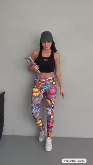 Modern Dijital Baskılı Yüksek Bel Spor Tayt | Esnek Likralı Kumaş